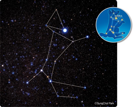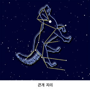 큰개자리는 사냥꾼인 오리온자리의 뒤에 작은개와 함께 위치해 있고, 모두 오리온의 사냥개였다는 이야기가 가장 많이 알려져 있다고 해요.