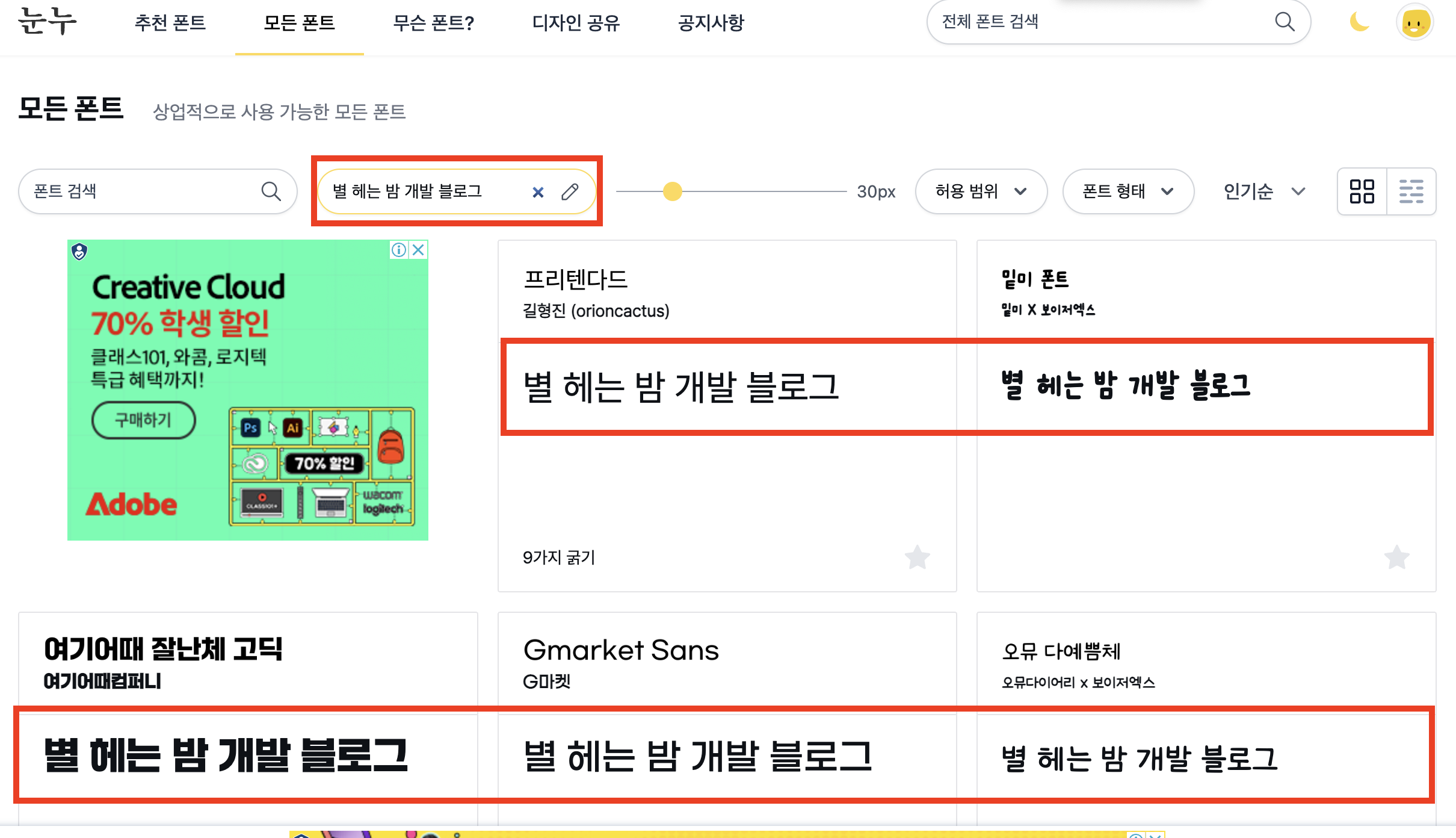이렇게 하니까 폰트를 직접 적용하지 않아도 느낌을 볼 수 있어서 좋더라고요!